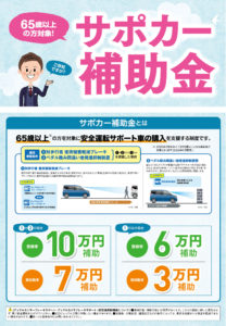 サポカー補助金とは、65歳以上の高齢運転者が対象の補助金制度。