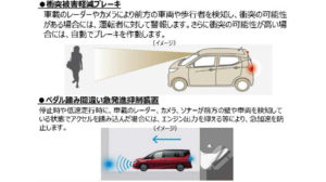衝突被害軽減ブレーキやペダル踏み間違い急発進等抑制装置が装備された